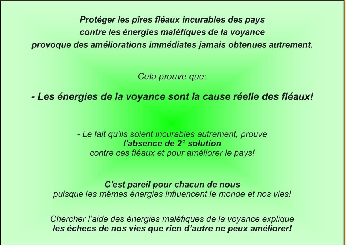 C'est donc uniquement en combattant les énergies maléfiques de la voyance qu'on retrouvera les conditions favorables pour restaurer l'économie, la sécurité, le dialogue politique etc...